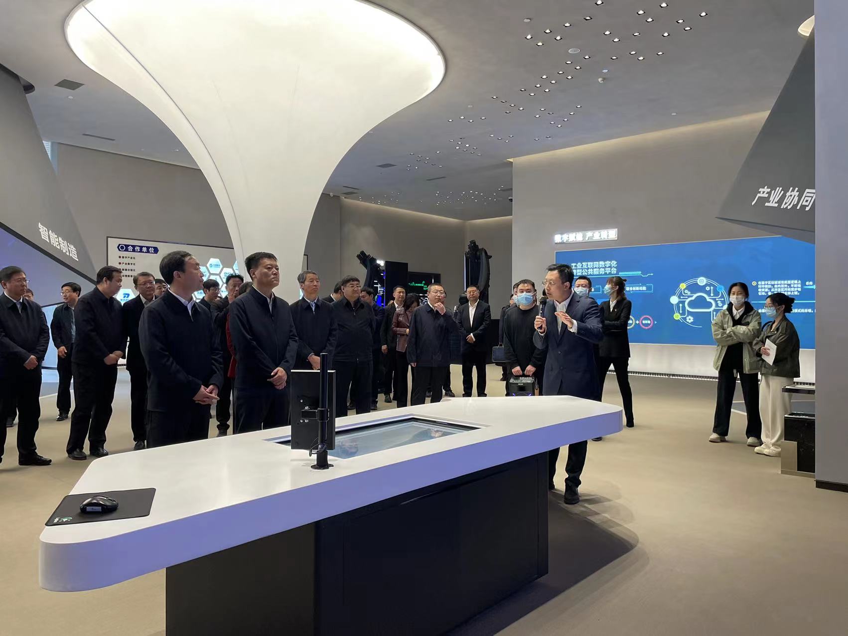 晋中市市委书记常书铭和市长刘星带领市四套班子成员,各县区委书记、县长(区长),市直部门负责人和部分高校领导参观、指导海洋液压工业互联网平台。