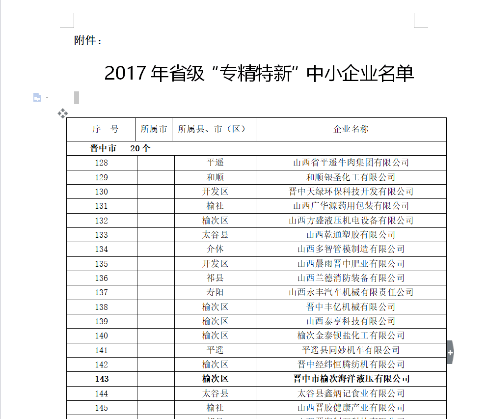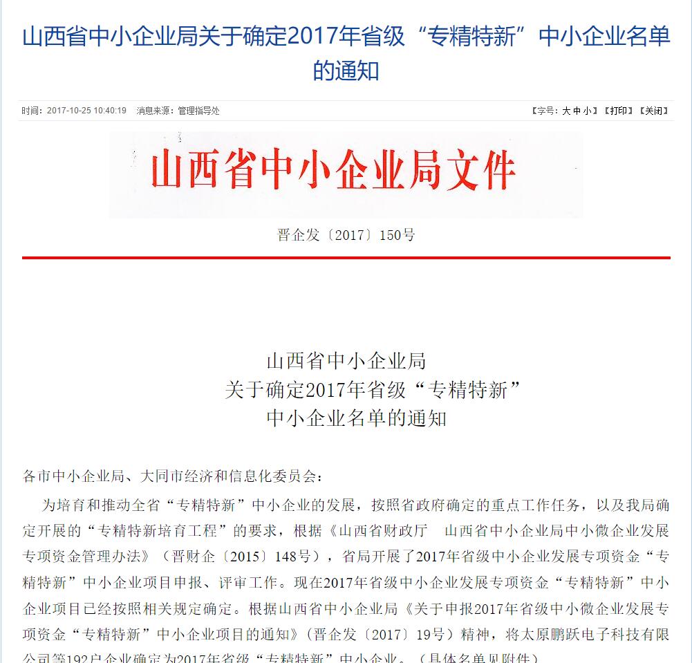 热烈庆祝海洋液压入选山西省2017年度“专精特新”企业称号