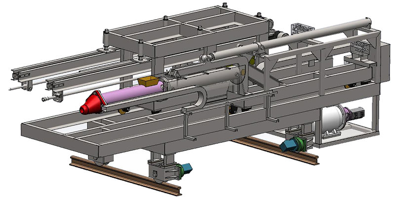 1. 铁合金轨道式横动开堵眼机适用于炉前位置可放置设备横向移动的场所、设备特征是:集液压系统、电控系统和开孔、堵眼、捅拉眼于一体,客户仅需安装好轨道,连通好电源,即可工作。本产品最大的特征是设备采用双伸缩设计、适用于场地更狭窄的工作场所。
